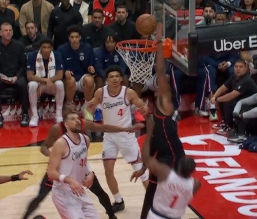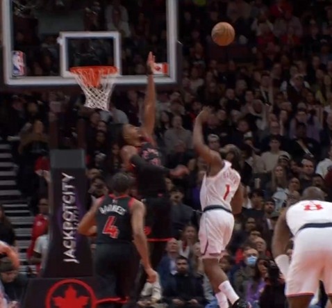 GIF-哈登上篮被干扰球